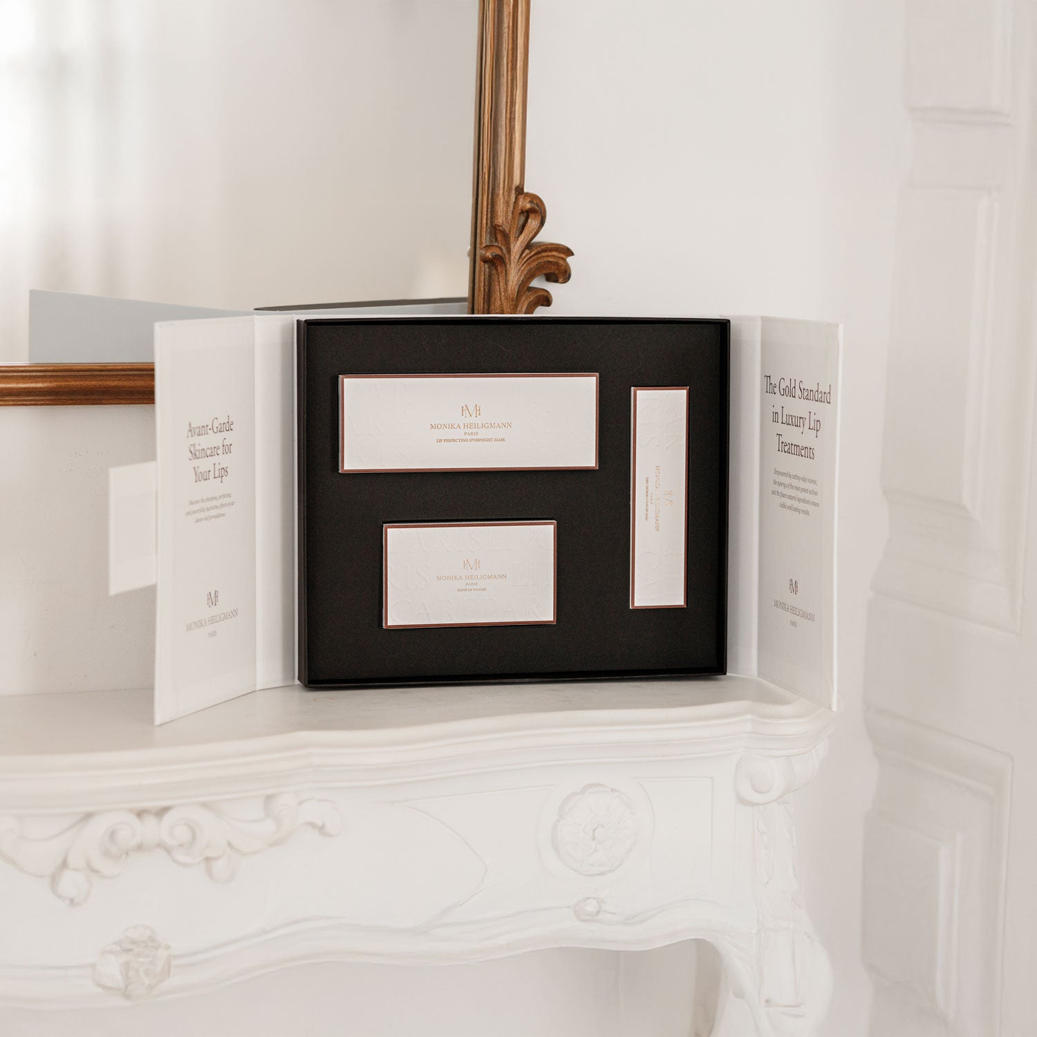 Midnight in Paris Giftset 3 is een exclusieve limited edition set met drie iconische lipverzorgingsproducten, ontworpen voor wie zichtbaar vollere, gladdere en intens gehydrateerde lippen wil. De set bevat de limited edition Elixir de Volume N°9 Midnight in Paris, het Lip Perfecting Overnight Mask en de Deep Regenerating Balm.